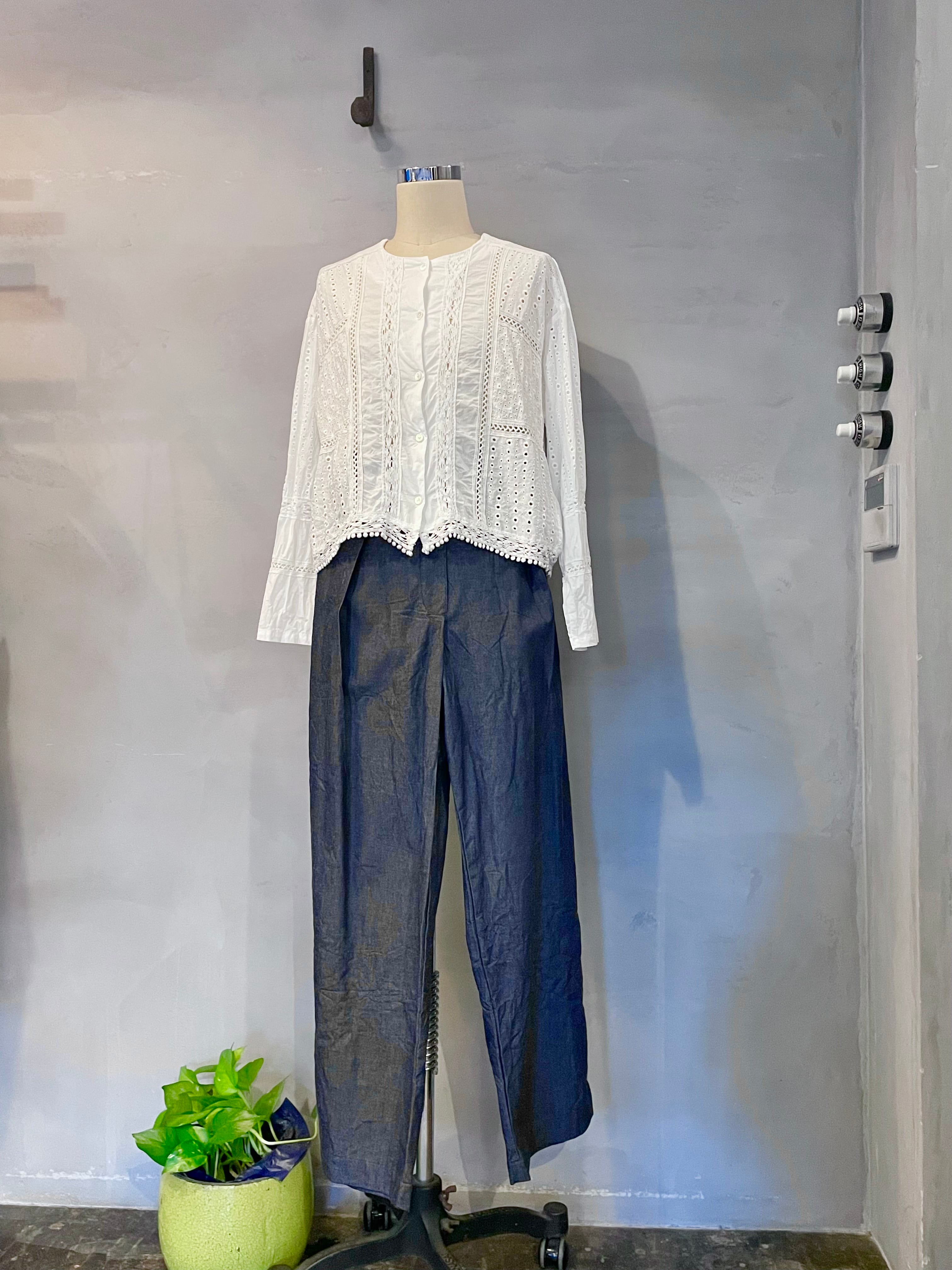 cotton lace blouse / white