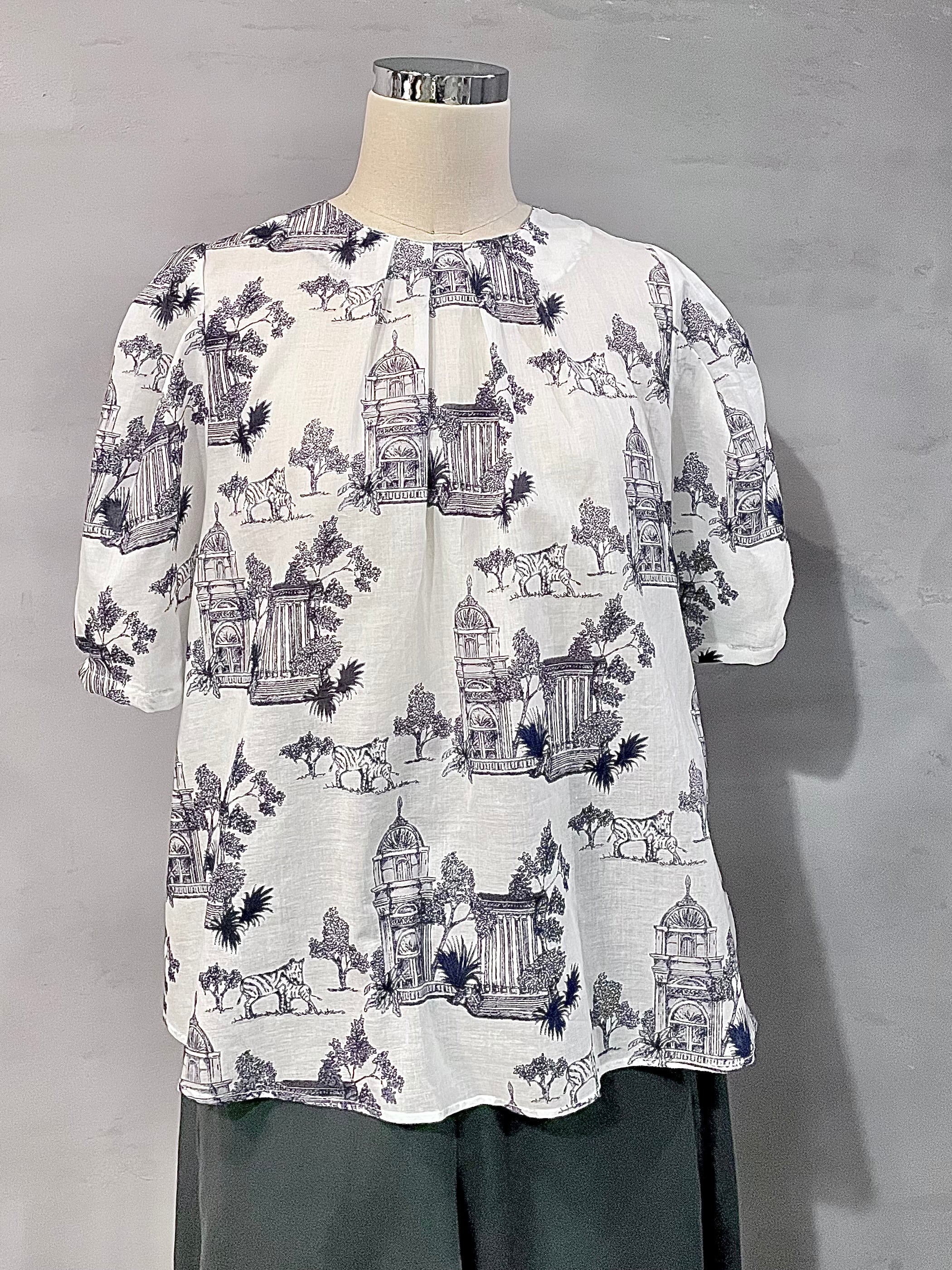 cotton print pullover / navy