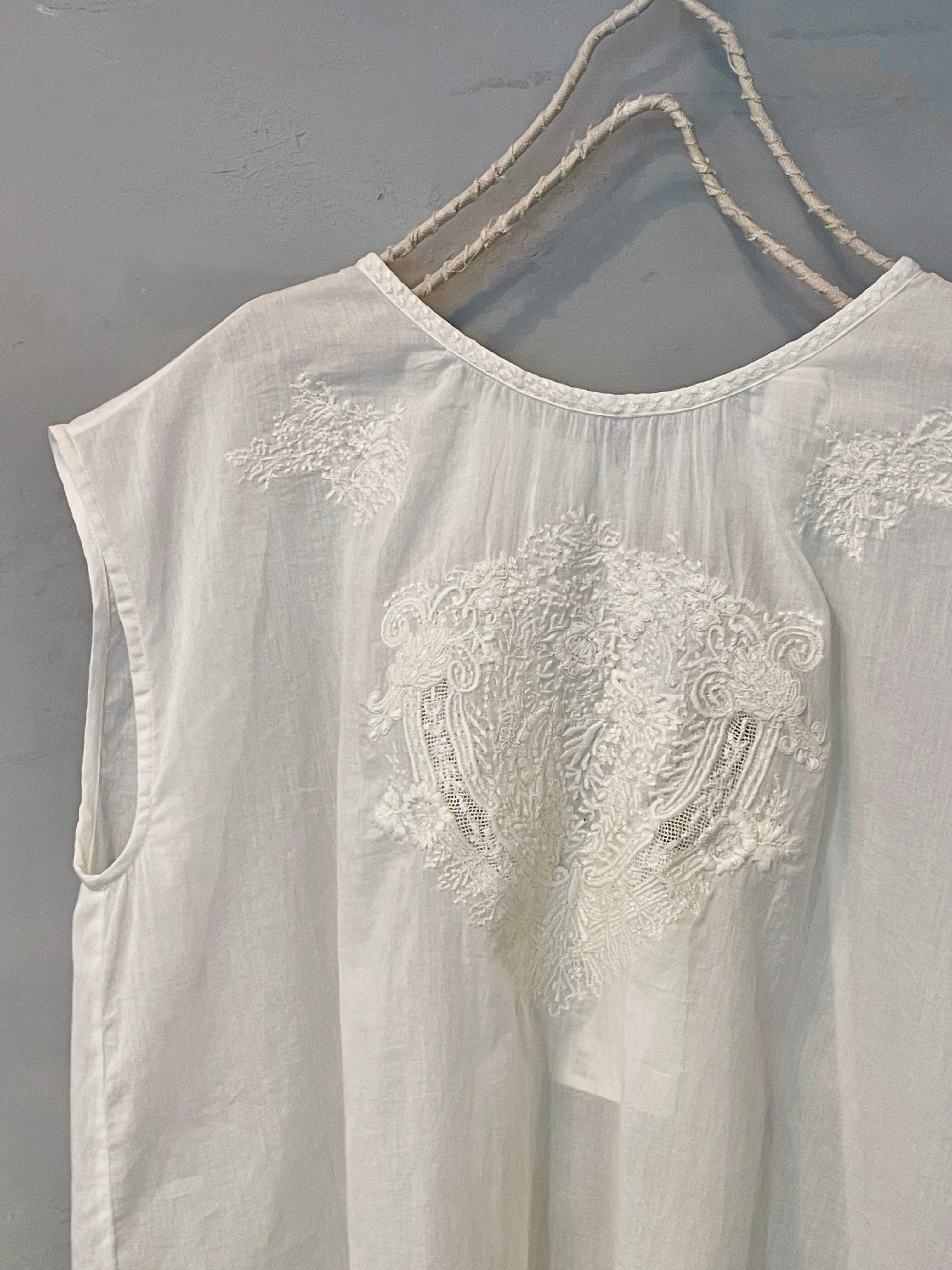 embroidery french sleeve pullover / écru × écru